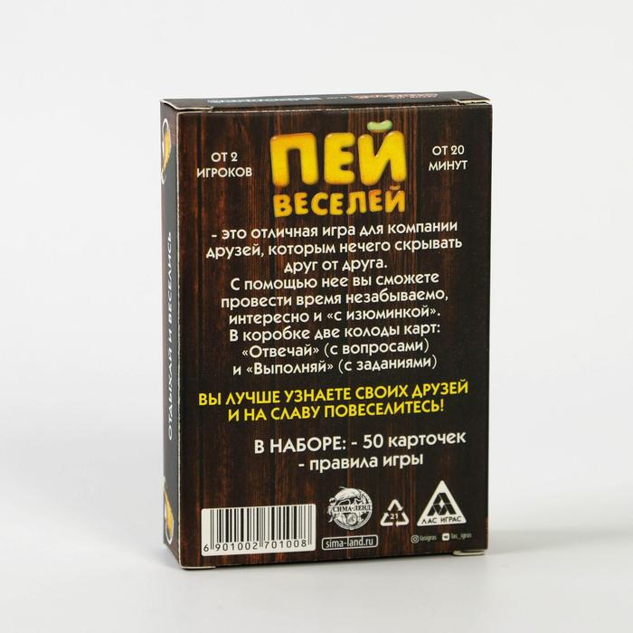 Купить игра для компании "пей веселей" 50 карт от 180 руб. с доставкой до пункта выдачи в Пугачёве. Интернет магазин ДекаМаркет. Оплата при получении.